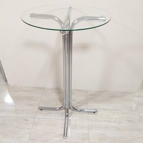 Mesa Bistrô/Bar CROMADA Tampo vidro incolor 6 mm de espessura e 60 cm de diâmetro.