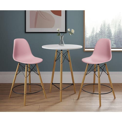 Mesa bistrô eames eiffel branca com 2 banquetas rosas de madeiraO conjunto de mesa e banqueta eames eiffel bistrô possui um design moderno cheio de charme, fabricado com material de alta qualidade, proporcionando o melhor conforto e sem perder o estilo. A banqueta possui uma curvatura ergonômica que se encaixa perfeitamente ao corpo, ficando ainda mais completo com a mesa.Tipo: conjuntoModelo: bistrôCor da mesa: brancoCor da banqueta: rosaCaracterísticasProduto nacionalBase: madeira maciçaTampo da mesa: mdfAssento: plástico polipropilenoBanqueta suporta: até 120kgGarantia: 90 diasDimensões da banquetaAltura: 115cmAltura até o assento: 70cmLargura: 45cmComprimento: 45cmDimensões da mesaAltura: 97cmDiâmetro: 60cmImagens meramente ilustrativas, podendo haver uma pequena variação na cor dependendo de cada tela ou monitor. Objetos da imagem ambientada não acompanham o produto.Mesa Bistrà Eames Eiffel Branca com 2 Banquetas Rosas de Madeira