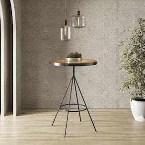 Mesa Bistrô em Aço com Tampo Revestido em Couro Sintético Marrom/Preto