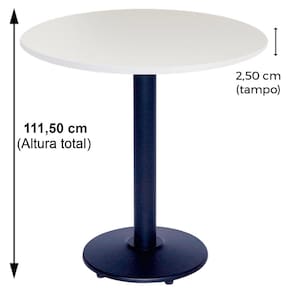 Mesa Bistrô Ferro Preto 111,50 cm (Alt) Disco Redondo Tampo MDP Redondo 70 cm (Larg) x 2,50 cm (Alt) Branco