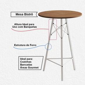 ATENÇÃO AS IMAGENS SÃO MERAMENTE ILUSTRATIVAS E PODEM SOFRER VARIAÇÕES DE COR E PEQUENOS DETALHES DE ACORDO COM O SEU MONITOR, ILUMINAÇÃO DO AMBIENTE E ATÉ MESMO A SUA PERCEPÇÃO VISUAL.Mesa Bistrà Redonda Estrutura em Ferro Branco com Tampo FreijÃ