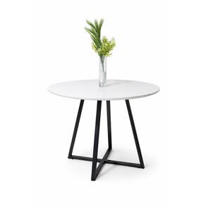 CARACTERÍSTICAS DO PRODUTO Tipo: Mesa de Jantar Modelo: Lais Formato: Redondo Cor do Tampo: Branco Material do Tampo: MDF 18mm Estrutura/Pés: Ferro com pintura preta Design: Moderno e versátil