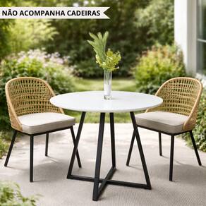 Com tampo em MDF de 18mm e estrutura com pés de ferro, a mesa oferece excelente estabilidade e durabilidade para o uso no dia a dia. Seu formato redondo favorece a interação entre as pessoas e é perfeito para ambientes compactos, proporcionando conforto sem ocupar muito espaço.