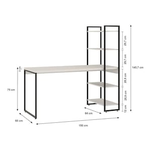 Mesa c/Estante Alta 150X64X147cm C/04 Prateleiras Branco Chess / Est.Preta