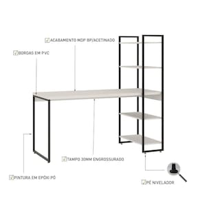 Mesa c/Estante Alta 150X64X147cm C/04 Prateleiras Branco Chess / Est.Preta: 150 x 64 x 147 cm