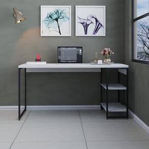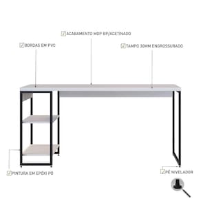 Mesa c/Estante Baixa 150X64X75cm C/02 Prateleiras Branco Chess / Est.Preta
