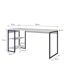 Mesa c/Estante Baixa 150X64X75cm C/02 Prateleiras Branco Chess / Est.Preta: 150 x 60 x 75 cm
