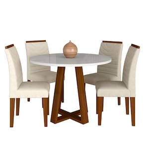 Detalhes Técnicos da Mesa -Tipo de Pintura:UV Texturizada -Borda da Mesa:P.U -Material Base:Madeira Eucalipto -Material Tampo:MDF 25mm/VIDRO 4MM -Medida Montada:A:80CM P:110CM L:110CM -Tonalidade da Mesa:Cinamomo/Off White