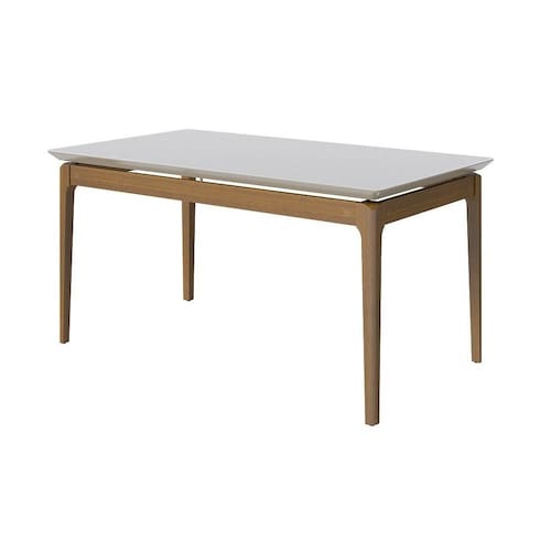 A Mesa c/ vidro Retangular - Off White/Nature é uma peça que dará muito charme e elegância para o seu espaço. Tem sua estrutura (pés e travessas) em madeira maciça, tampo em MDF com espessura de bordo 40mm, chanfrado 45° laqueado, vidro retangular de 3mm pintado.