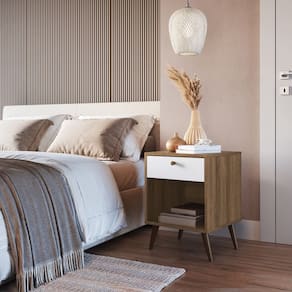 Adicione um toque de elegância e funcionalidade ao seu quarto com a mesa de cabeceira de design retrô! Produzida em MDP de 15mm, ela combina durabilidade com estilo. Seu amplo nicho e gaveta espaçosa oferecem o espaço ideal para manter seus itens organizados e de fácil acesso, como livros, eletrônicos, e objetos pessoais. Com pés palito retrô, esta mesa de cabeceira traz um charme vintage, perfeito para quem deseja inovar e tornar o ambiente mais requintado e prático. É a escolha ideal para completar a decoração do seu espaço e elevar o nível de conforto e conveniência. Este móvel chegará em sua casa separado em 01 Volume.