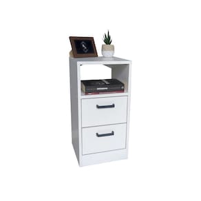 Enviada Montada: Produto chega pronto para uso, sem necessidade de montagem. Materiais Duráveis: Feita em MDF de 15mm, garantindo resistência e durabilidade. Espaço Amplo e Bem Dividido: Duas gavetas espaçosas para organizar seus pertences e um nicho adicional para itens decorativos ou essenciais. Acabamento Sofisticado: O acabamento fosco oferece um toque elegante, enquanto as gavetas com corrediças telescópicas garantem um deslizar suave e fácil. Design Versátil: Com cores neutras branco, preto e off white , combina com qualquer estilo de decoração.
