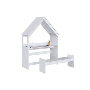 Mesa Cabeceira Casinha c/ Banco Branco - Peroba