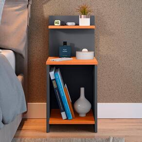 Mesa Cabeceira Fantasy Nicho Porta Objetos Prateleira Organizadora Mesinha Lateral Decoração Quarto Cinza/Cinamomo - Lojas RPM