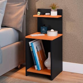 Possuí nichos espaçosos, oferecendo praticidade para acomodar itens essenciais, como abajur, celular e despertador, além de ser perfeita para exibir objetos decorativos.