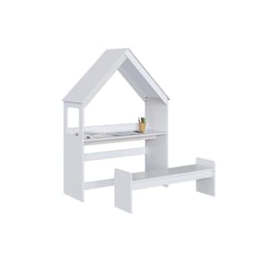 Mesa Cabeceira Infantil Casinha C Banco Peroba sem Gavetas MDF Moderno Branco