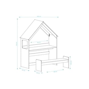 Organize o quarto infantil com a mesa cabeceira infantil Casinha com banco Móveis Peroba, ideal para apoiar itens ao lado da cama. O conjunto oferece praticidade no dia a dia, unindo apoio lateral e espaço para estudo ou desenho. A escrivaninha embutida e a prateleira única ajudam a acomodar livros, luminária e objetos decorativos de forma funcional. O design em MDF com estilo moderno e acabamento branco combina com diferentes propostas de quarto infantil. A marca Móveis Peroba ainda oferece montagem com kit de instalação e garantia informada pelo fabricante.