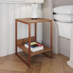 Mesa Cabeceira Lateral De Cama Industrial Amêndoa Tókio Base Cobre Cor: Amendoa - Marrom