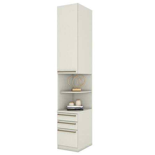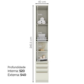 Diferenciais: Puxador em alumínio, dobradiças metálicas, corrediças telescópicas, opção de montagem (Direita/ Esquerda).
