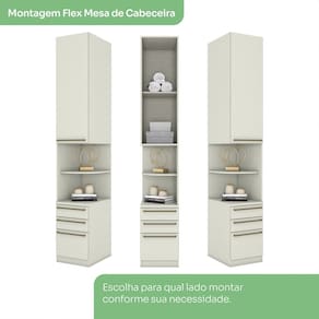 Modulado Seletto é completo e foi desenvolvido para atender as mais diversas necessidades de uso e espaço, várias possibilidades de combinações casal ou solteiro. Mesa de Cabeceira Modulado 1 porta e 3 gavetas. Estrutura em MDP de 15mm e Portas em MDF/BP de 15mm (fundo com 3mm), dobradiças metálicas 35mm com amortecimento, 3 gavetas com corrediças telescópicas, 2 prateleiras suportando 8 kg cada, puxadores de alça em alumínio. Móvel com acabamento em pintura UV texturizado (fosco ou semibrilho), opção de montagem (Direita/ Esquerda). Este móvel chegará na sua casa separado em 2 volumes.