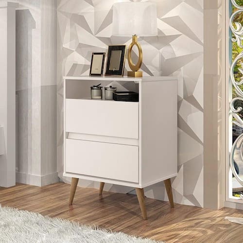 Mesa Cabeceira Off White 2 Gavetas Com 1 Prateleira Pes Palito