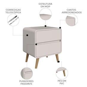 MDPMesa Cabeceira Quarto 47cm 2 Gavetas Nuvia Bege C06 - Mpozenato