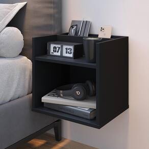 Mesa Cabeceira Suspensa Madri Mesinha Nicho Quarto Casal Solteiro Divisória Porta Objetos Decoração Moderna Prateleira Organizadora - Lojas RPM - Preto