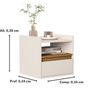 Mesa de cabeceira suspensa com porta medina plus - cores - comprar moveis para sua casa Cor: off white / nature Mesa de cabeceira suspensa minerva estilo retrô, embalado com caixa reforçada nas laterais para não ocorrer no transporte. Vendido pela comprar móveis em casa para deixar seu ambiente mais bonito e sofisticado procure nossas redes sociais e confira todos nossos produtos e qualidade de atendimento : Produto com video de montagem no nosso canal, acesse nossas redes sociais: comprar móveis em casa Dimensões do produto montado Altura: 0,39 cm Largura: 0,34 cm Profundidade: 0,33 cm Caractersticas: 1 porta basculante Cabeceira suspensa, acompanha grapa para instalação Material: mdp / mdf pode haver variações da matéria em lotes diferentes Pintura uv Montagem: Este produto acompanha kit de montagem + manual de instrução detalhando passo a passo de como montar. A montagem do produto deverá ser feita por um , para que não ocorram danos no produto. não nos responsabilizamos por erro de montagem Atenção: a montagem não é oferecida pela comprar móveis em casa, a montagem do produto é por conta do comprador. Observações importantes: A é de 90 dias por defeitos de fabricação. Em caso de erro de montagem, uso inadequado do produto, ou outros acidentes do gênero esta não será acionada. Se no ato de recebimento do produto o cliente verificar que o produto não está em prefeito estado, principalmente por ocasião de transporte irregular, o cliente deverá recusar o recebimento do produto e entrar em contato para resolver o problema. Podem haver variações referentes à tonalidade das cores expressas nas fotos, por conta de fatores como iluminação e brilho de cada monitor/celular. Fotos meramente ilustrativas, não acompanham os produtos de decoração. Se atente com a politica de troca/devolução da empresa, pois não é possivel realizar devolução do item montado. Marca: Não Informado Ean: 7795296567223