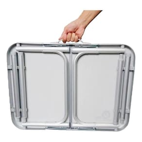 Mesa Camping Dobrável 60x45cm Vira Maleta Agora você tem um lugar confortável para suas refeições a céu aberto. Com a nossa Mesa Dobrável você pode acampar ou fazer aquele piquenique com a família. Ótima, também, para jogos de cartas e tabuleiros, ela possui espaço para acomodar até 2 adultos e é produzida em material resistente e seguro. Esta mesa também oferece um ótimo apoio para as crianças fazerem suas tarefas escolares ou desenhar. Se converte em uma pequena maleta que pode ser facilmente transportada e guardada em qualquer lugar, sem ocupar muito espaço. Especificações: - Mesa em polipropileno - Estrutura em alumínio Medidas da Mesa montada: - Altura com pernas menores: 26cm - Altura com pernas maiores: 59cm - Largura: 45cm - Comprimento: 60cm Medidas da Maleta: - Altura: 8 cm - Largura: 45 cm - Comprimento: 60 cm - Peso: 2,1kg Ideal para: - Jogos (carta e tabuleiro) - Refeições (almoço, janta, café) - Estudos - Desenhos Conteúdo: - 1 mesa de camping dobrável