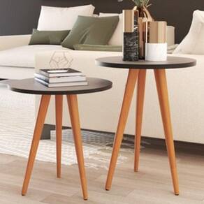 Mesa Triangular de Madeira Preta com altura de 50cm ela é perfeita para servir como aparador ou mesa de centro em sua sala de estar ou na varanda de sua casa seus pés de madeira e seu design vintage dá aquele toque sofisticado para sua casa, e sua resistência à umidade e facilidade a limpeza a torna uma peça única na decoração da sua casa .