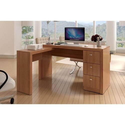 Mesa Canto p/Escritório ME4101 c/ 3 Gavetas Amêndoa - Tecno Mobili