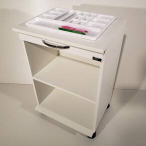 *** Mesa Carrinho Auxiliar c/2 nichos para Clínicas de Estética ***>> Os móveis são ENVIADOS MONTADOS, prontos para uso! <<- Mesinha em MDF branco com 2 nichos;- Medidas: Largura 48cm x Altura 72cm x Profundidade 35cm;- MDF Branco TX 100% original;- A primeira gaveta foi desenvolvida para facilitar a movimentação do carrinho;- O carrinho auxiliar conta com interior generoso, ela é a opção ideal para quem busca um utilitário robusto, elegante com muito espaço para seus equipamentos e materiais nos nichos;- Acompanha 1 (uma) bandeja divisória poliestireno;- Armários atualizados e desenvolvidos em observância as normas da ANVISA;- Pronta para utilizar, chega montada em seu consultório!!!;- À pronta entrega!!!;*** Viva o sonho de um novo armário clínico com mais tranquilidade ainda. DEKI MÓVEIS ODONTOLÓGICOS. ***ATENÇÃO A PRIMEIRA GAVETA NÃO ABRE, É FIXA, SERVE APENAS PARA MOVIMENTAR A MESINHA.* Imagens meramente ilustrativas, podendo o produto sofrer alterações como modelo de cuba, torneira, rodízios e puxadores sem aviso prévio. *