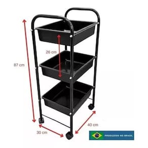 2. Quantas bandejas o carrinho possui? R: O carrinho possui 3 bandejas espaçosas.