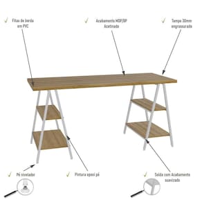 Mesa Cavalete 150x60x75cm Kuadra Lâmina Mel - Sobre o ProdutoMesa Cavalete 150x60x75cm Kuadra KUMC6150 Lâmina Mel - Est.BrancaDescrição do Produto:A Mesa Cavalete KUMC6150 tem montagem simples e versátil, podendo ser utilizada em diversas composições com outros mó Linha Kuadra tem seu design com inspiração no estilo industrial, que remete muito a decoração usada nos Lofts das grandes metrópoles nos anos 60 e 70. Harmonizando o metal e os tons de madeira, foram projetados móveis versáteis e com estilo, que podem compor ambientes íveis cheios de personalidade, perfeitos para você decorar sua casa ou seu trabalho, tendo um resultado que caminha do estilo rústico ao Inclusos:1 MesaDimensões dos Produtos:Mesa Cavalete 150x60x75cm Kuadra KUMC6150 Lâmina Mel - 150 x 60 x 75 cmInformações Logísticas (Comp. X Prof. X Alt.) 155 x 64,5 x 7 cm - Peso: 26,614 KgPeso Total: 26,614 KgObservações:Não acompanha acessórios decorativos. Imagens meramente ilustrativas.Informações Técnicas / Características:- Cor do Produto: Lâmina Mel - Cor do Predominante: Marrom- Marca: Compace- Modelo: KUMC6150- Linha: Kuadra- Material: Mdp- Material da Estrutura / Pés: Aço- Acabamento: Perffect- Escala de Brilho: Fosco- Fita de Borda: Pvc - Possui Gavetas: Não - Possui Prateleiras: 4- Peso Máximo por Prateleira: 05kg- Possui Pés: 2- Pés Niveladores: Sim - Acabamento Estrutura: Epóxi-Pó- Formato: Retangular - Suporta Até (kg): 50kg- Comprimento: 150cm- Profundidade: 60cm- Altura: 75cm - Peso Lí.: 25,79Kg- Recomendações de Uso, Manutenção e Limpeza: Para a limpeza, utilize flanela seca ou pano macio levemente umedecido em água. Utilize um pano seco em seguida. Evite com produtos químicos (solventes, thinner, acetona, etc) e não utilize nenhum tipo de esponja de aço.- Necessita de Montagem: Sim / Acompanha Manual de Montagem- Complexidade da Montagem: Média: pode ser montado por mais de uma pessoa e/ou necessite de maior conhecimento para montagem.- Garantia: 6 meses Material: MDP | Acabamento: BP | Escala de Brilho: Fosco | Fita de Borda: Pvc | Material da Estrutura: Aço | Acabamento da Estrutura: Epóxi-Pó | Numero do Fabricante: | Cômodo indicado: Escritório | Fabricante: Compace | Marca: Compace | Quantidade de caixas de embalagem: 1 | Altura do Produto: 75 | Largura do Produto: 150 | Profundidade do Produto: 60 | Produto: Mesa | Modelo: Mesa Kuadra | Tipo de produto: Mesa | Cor: Mel | Tonalidade: Mel | Baterias são necessárias?: Não se Aplica | Palavras-chave de Pesquisa: Não se Aplica | Coleção: Industrial | da peça: KUMC6150 | do modelo: KUMC6150 | de caixas: 1 | Componentes incluídos: Manual de montagem e kit acessórios | Certificação Externa: Não se Aplica | Requer Baterias: Não se Aplica | Certificação de teste externa: Não se Aplica | Principais Características do Produto 0: MDP | Principais Características do Produto 1: Fitas de PVC | Principais Características do Produto 2: Fosco | É fragil: Sim | Peso do item: | Dimensões do item P x L x A: 60x150x75 | Part_number: Não se aplica Cor: Lâmina Mel -