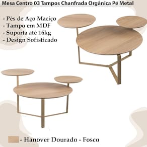 Mesa Centro 03 Tampos Chanfrada Pe Metal Dou 28021