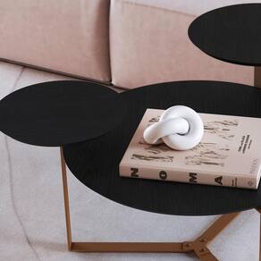 Mesa Centro 03 Tampos Chanfrada Pe Metal Dourado Nero Artesano Nero Dourado