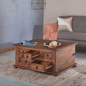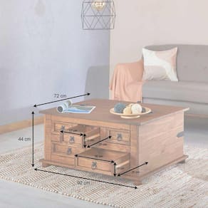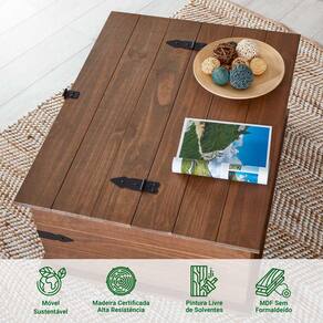 Além das gavetas funcionais, essa mesa de centro também conta com um espaçoso baú, perfeito para armazenar livros, revistas, mantas ou qualquer outro item que você queira manter à mão, mantendo sua sala de estar organizada e livre de bagunça. Os puxadores coloniais adicionam um toque clássico e elegante ao design.