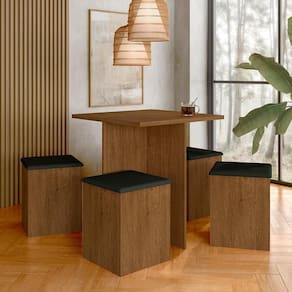 O Conjunto Sala de Jantar Mesa com 4 Banquetas Baú Calgary com um design moderno e funcional, este conjunto é perfeito para otimizar ambientes menores ou criar uma área de refeições versátil em sua casa!