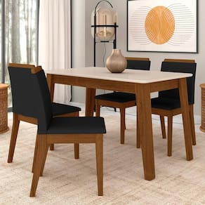 A Mesa Argélia com 4 Cadeiras traz um visual clássico e minimalista, perfeito para transformar sua sala de jantar em um ambiente acolhedor e repleto de elegância!