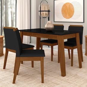 A Mesa Argélia com 4 Cadeiras traz um visual clássico e minimalista, perfeito para transformar sua sala de jantar em um ambiente acolhedor e repleto de elegância!