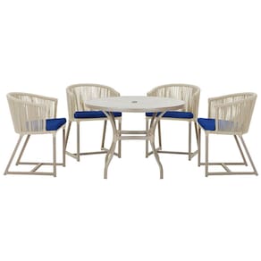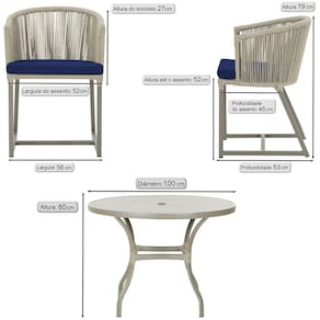 Descubra a Elegância e Durabilidade da Mesa de Jantar Roma e Cadeiras Noronha. Combinando estilo e resistência, esta Mesa e cadeiras traz o melhor do design contemporâneo em alumínio com micro pintura e acabamento em corda náutica. O estofado impermeável completa o conforto e a funcionalidade, tornando-a ideal para ambientes externos e internos.