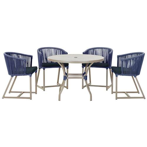 Mesa com 4 Cadeiras de Jantar Roma 100cm e Noronha em Aluminío - Azul