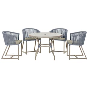 Descubra a Elegância e Durabilidade da Mesa de Jantar Roma e Cadeiras Noronha. Combinando estilo e resistência, esta Mesa e cadeiras traz o melhor do design contemporâneo em alumínio com micro pintura e acabamento em corda náutica. O estofado impermeável completa o conforto e a funcionalidade, tornando-a ideal para ambientes externos e internos.