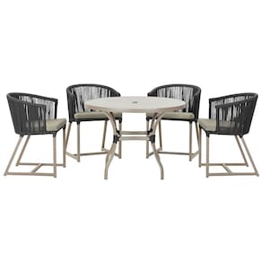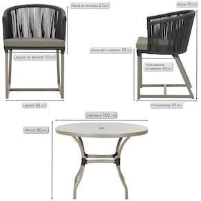 Descubra a Elegância e Durabilidade da Mesa de Jantar Roma e Cadeiras Noronha. Combinando estilo e resistência, esta Mesa e cadeiras traz o melhor do design contemporâneo em alumínio com micro pintura e acabamento em corda náutica. O estofado impermeável completa o conforto e a funcionalidade, tornando-a ideal para ambientes externos e internos.