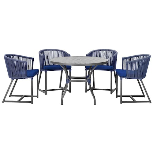 Mesa com 4 Cadeiras de Jantar Roma 100cm e Noronha em Aluminío - Azul