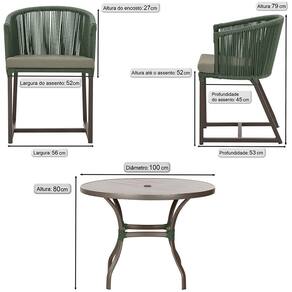 Mesa com 4 Cadeiras de Jantar Roma 100cm e Noronha em Aluminío - Verde Musgo
