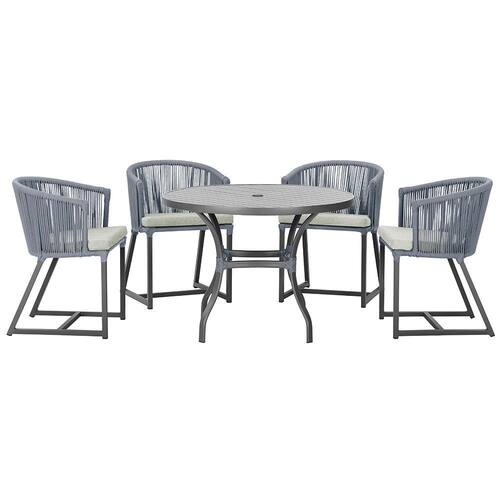 Mesa com 4 Cadeiras de Jantar Roma 100cm e Noronha em Aluminío - Prata