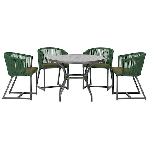 Mesa com 4 Cadeiras de Jantar Roma 100cm e Noronha em Aluminío - Verde Musgo