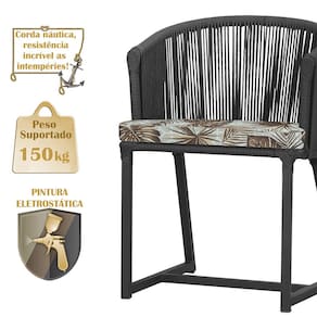 Descubra a Elegância e Durabilidade da Mesa de Jantar Roma e Cadeiras Noronha. Combinando estilo e resistência, esta Mesa e cadeiras traz o melhor do design contemporâneo em alumínio com micro pintura e acabamento em corda náutica. O estofado impermeável completa o conforto e a funcionalidade, tornando-a ideal para ambientes externos e internos.