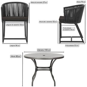 Mesa com 4 Cadeiras de Jantar Roma 100cm e Noronha em Aluminío - Preto