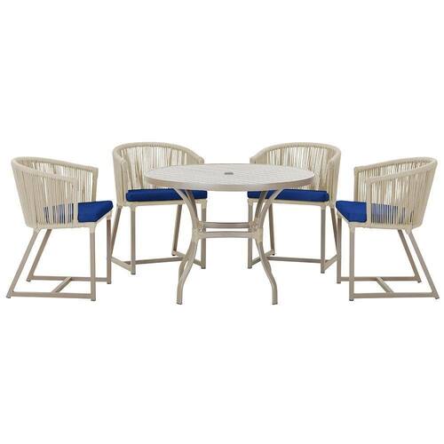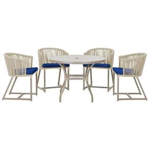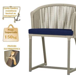 Descubra a Elegancia e Durabilidade da Mesa de Jantar Roma e Cadeiras Noronha. Combinando estilo e resistencia, esta Mesa e cadeiras traz o melhor do design contemporaneo em aluminio com micro pintura e acabamento em corda nautica. O estofado impermeavel completa o conforto e a funcionalidade, tornando-a ideal para ambientes externos e internos.